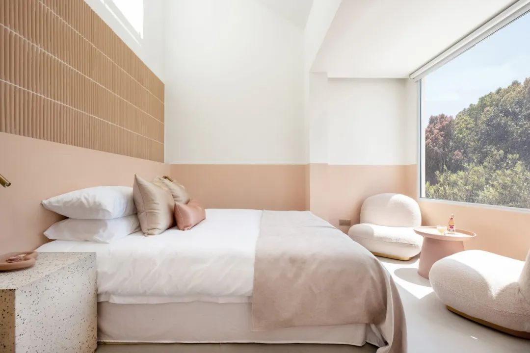 棲夢是一家專注打造“少女風“的民宿品牌,項目主題色彩的選擇延續了棲夢慣有的風格,以夢幻桃粉色為主,通過硬朗的材質和大體塊的造型去中和粉色的甜膩,正如每一個在這座城市中打拼的女孩都有著剛強的一面,但她們卻也溫柔細膩。